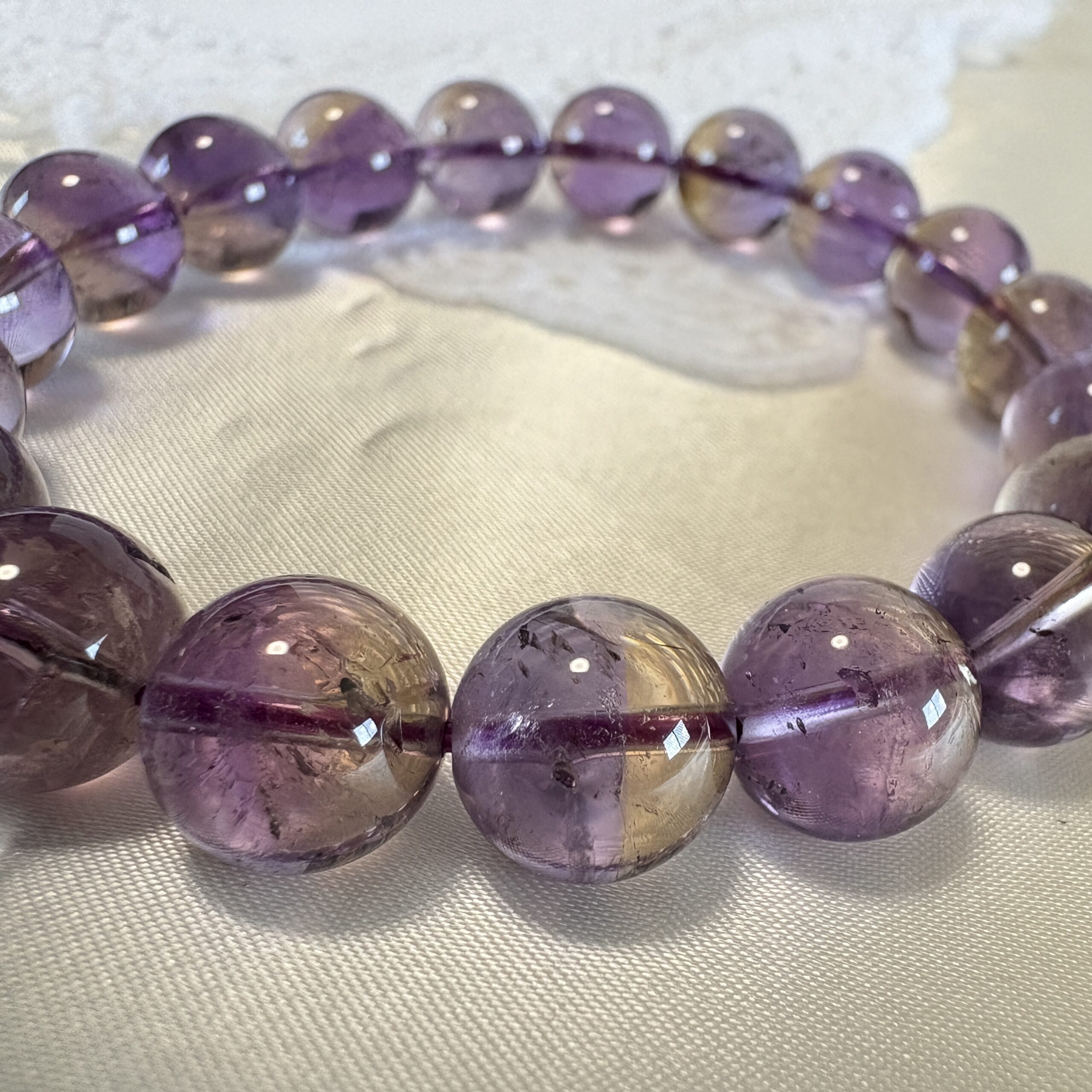 その単色ビーズを交互につなげたデザインを「アメトリン」として販売しているお店もあるのです。