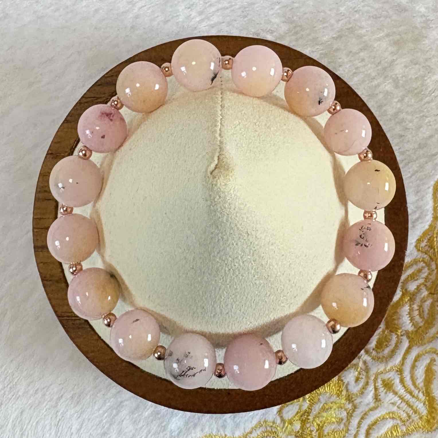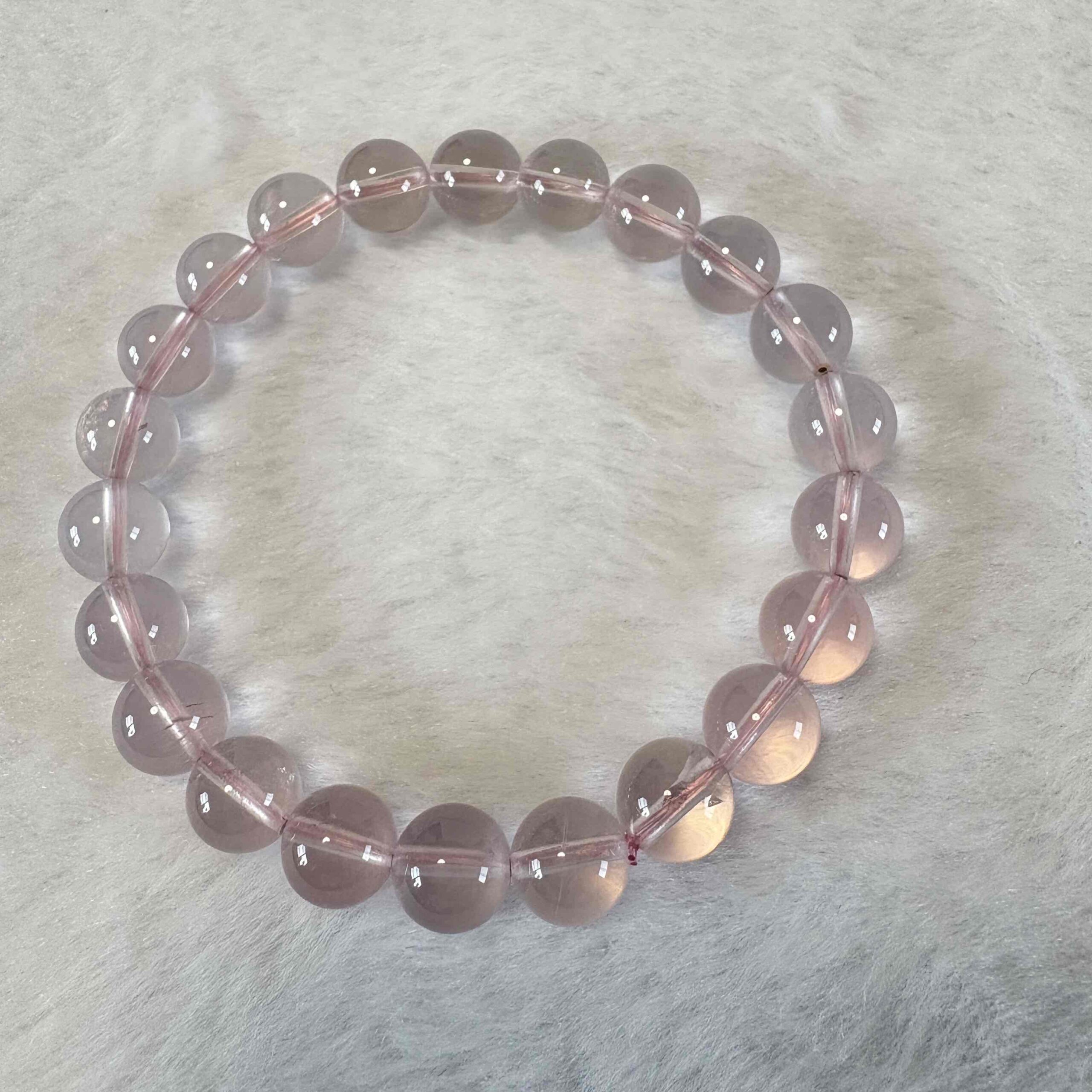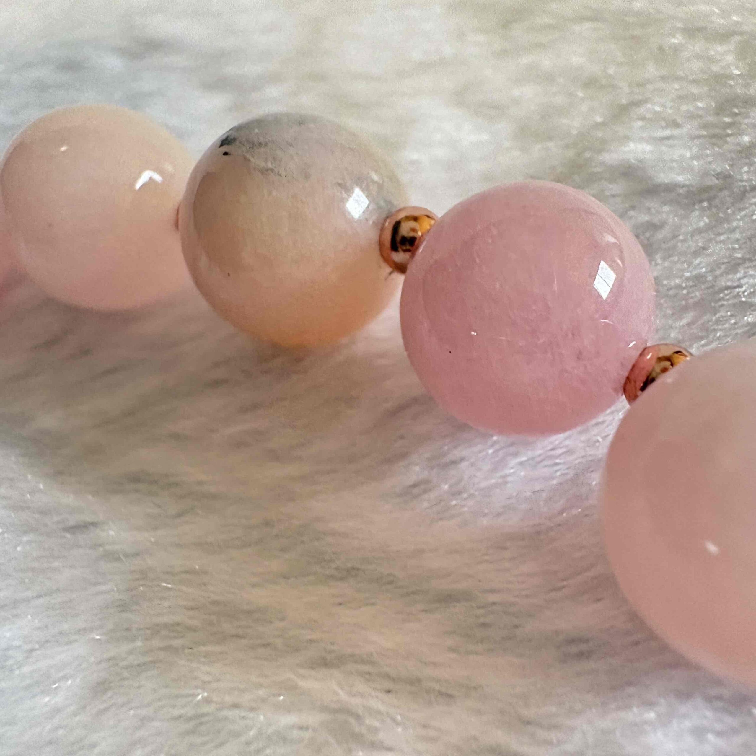 当店では、ローズクォーツやモルガナイトなどを、あえてシンプルな丸珠ブレスレットとしてご用意しています。